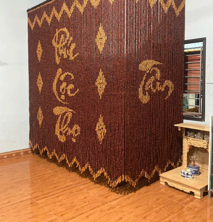 Rèm hạt gỗ phong thủy che bàn thờ mẫu RHG-021