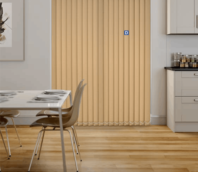 Rèm lá dọc làm bằng chất liệu vải phủ nhựa chống nắng 100%, rèm có khả năng xoay lật phải/trái 180 độ, kéo hết sang 1 bên hoặc đều 2 bên giúp bạn dễ dàng điều chỉnh mức độ ánh sáng.