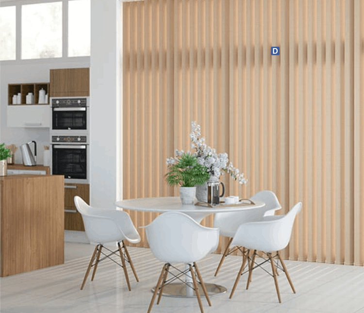 Rèm lá dọc làm bằng chất liệu vải phủ nhựa chống nắng 100%, rèm có khả năng xoay lật phải/trái 180 độ, kéo hết sang 1 bên hoặc đều 2 bên giúp bạn dễ dàng điều chỉnh mức độ ánh sáng.